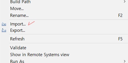 1) Project Exploror(이클립스 제일 왼쪽의 폴더, 파일들이 있는 부분의 빈공간)에서 우클릭