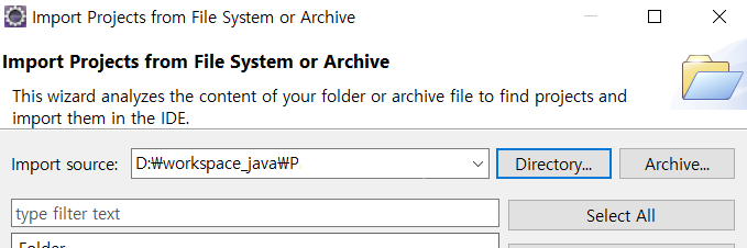 이클립스 상단의 File > Open Projects from File System.. 클릭