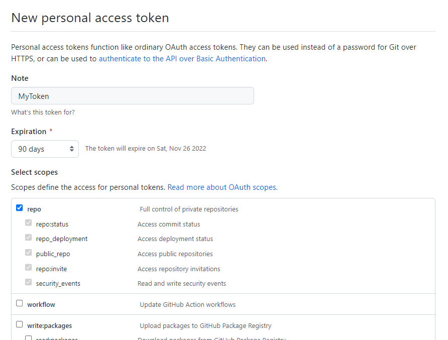 다 입력 후 제일 아래의 generate token 녹색버튼을 클릭한다.