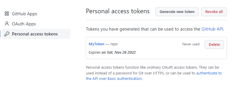 아래 사진처럼 토큰이름과 만료일로 토큰이 잘 만들어진것을 볼 수 있다.