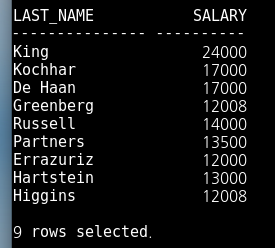 last_name과 salary를 출력하는 구문을 작성하시오.