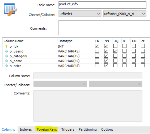 만약 GUI환경으로 작업을 했을때 문제가 생겼다면, 쿼리문으로 작성해보는것을 추천한다.