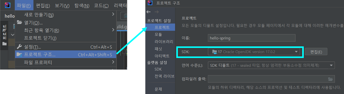File - 프로젝트 구조(Project Structure) - 프로젝트 - SDK 버전 설정