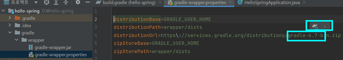 이 아이콘을 누르면 gradle이 업그레이드/다운그레이드를 진행한다.