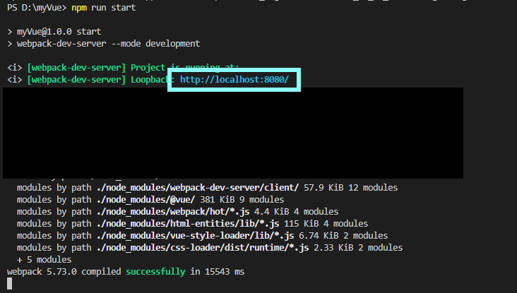 성공하면 이렇게 들어갈 수 있는 주소가 나오고, 인터넷 주소창에 주소를 입력하면 Vue가 실행된다!