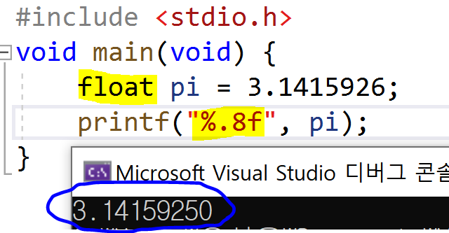 위의 사진을 보면 %.8f 로 수소점 이하 8자리까지 출력하라고 명령했습니다.