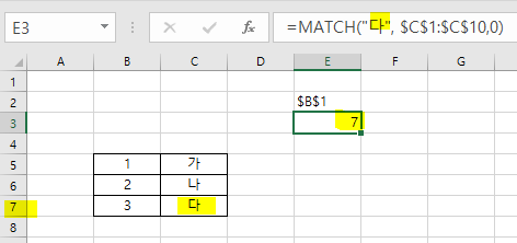 위 세 함수를 총 합해보면 MATCH함수로 글자의 행번호를 알아와서