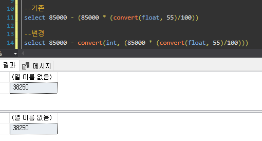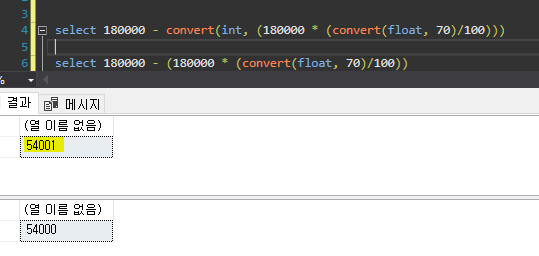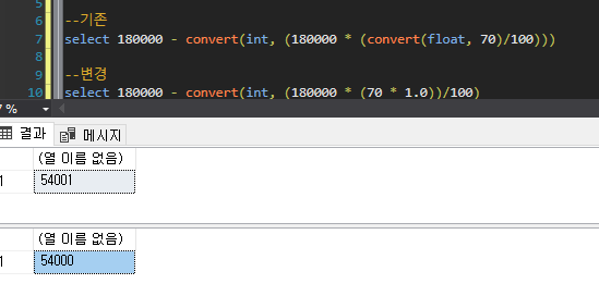 아주 잘 된다ㅎㅎㅎ mssql에서 소수점 계산하고 int로 변환할 일 있으면 convert float 하지말고 1.0 곱하는 방식으로 하는게 좋은 것 같다.