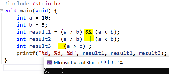 &&: and(그리고)연산자. 양쪽 둘다 참일때 1을 출력하고,