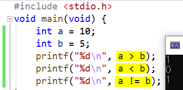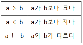 왼쪽과 오른쪽을 서로 비교하여 참이면 1, 거짓이면 0을 출력한다.