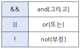 비교 연산자를 2개 이상 사용할때 사용하는 연산자.
