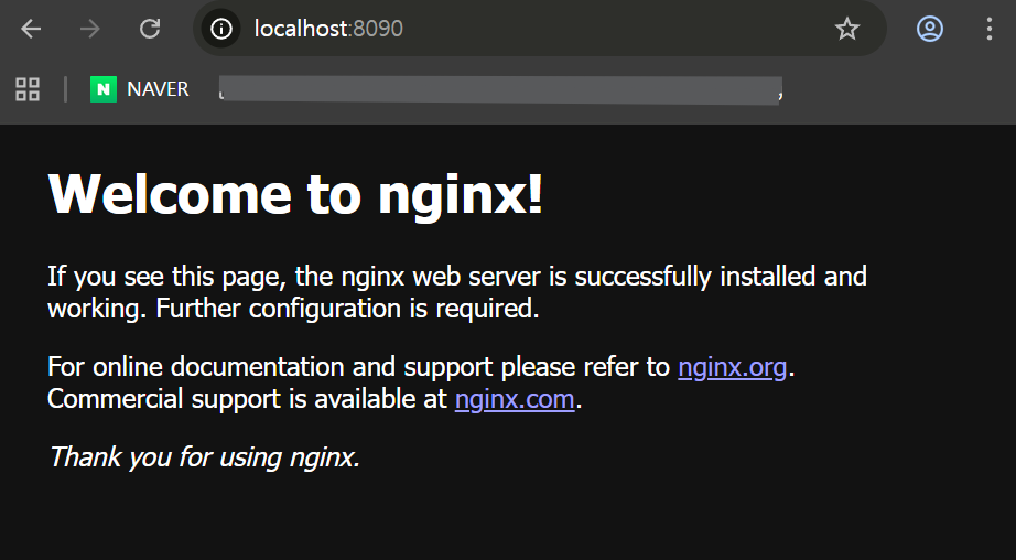 실행이 잘 되면 인터넷 주소창에 localhost를 열면 welcom nginx 가 뜬다.