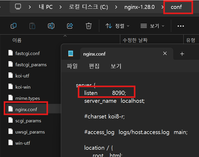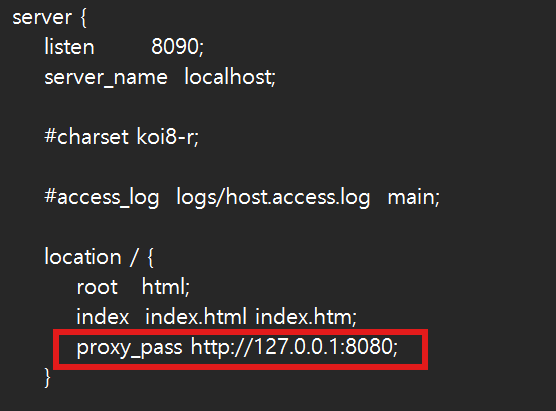 나는 스프링부트 실행은 8080으로 했고, nginx 설정은 8090으로 했다.