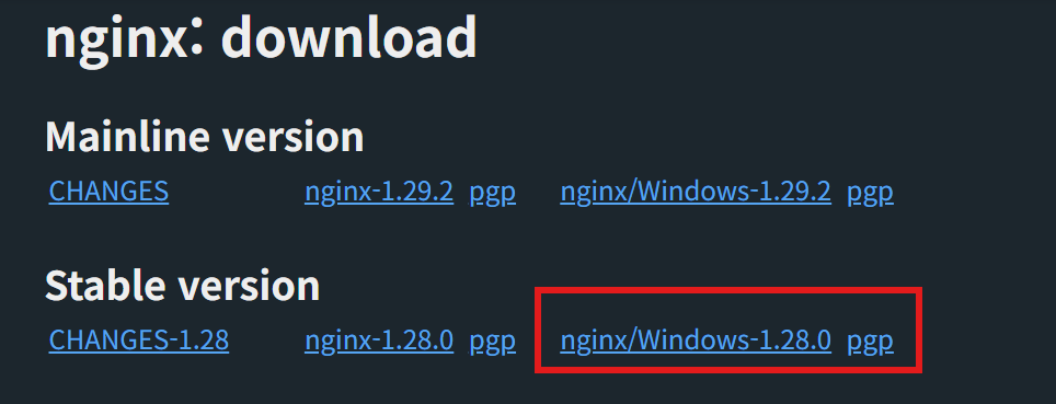 설치 사이트 : https://nginx.org/en/download.html