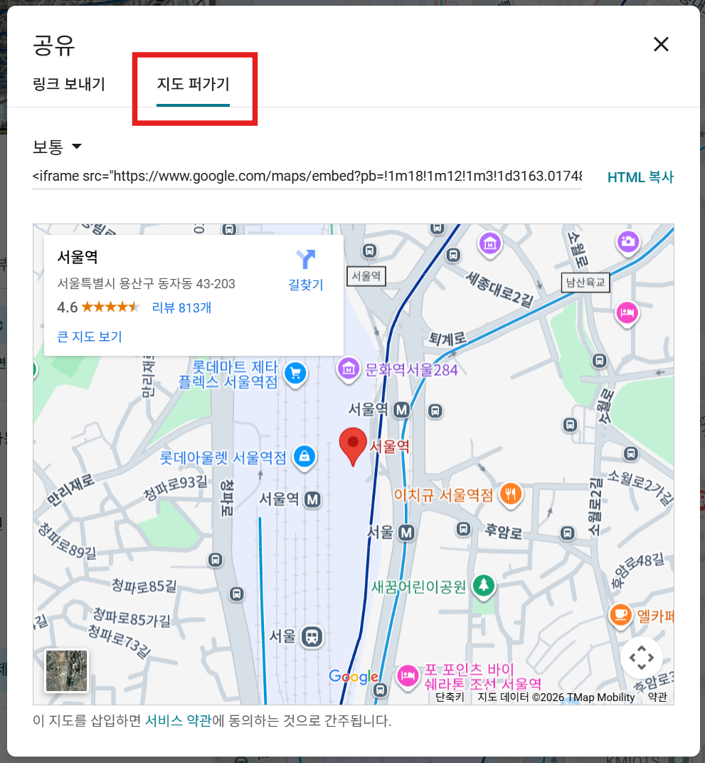 "지도 퍼가기" 클릭