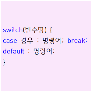 switch~case문이란? switch의 뜻은 스위치, "전환"이라는 뜻이고 case는 어떠한 "경우"를 의미한다. 해당 경우에 맞을경우, 그쪽으로 전환시키는 명령어. 쉽게말하면, 자판기에서 1번을 누르면 커피가 나오고 2번을 누르면 우유가 나오는 것처럼 만드는 원리! 앞서 배운 if문과 같은 원리이지만, if문이 엄청 많을경우 또는 조건이 딱 떨어지는경우 swith~case를 통해 간편하게 처리할 수 있다. 언제 Switch~case문을 실행할까? ① if문이 너무 많을 때 사용하면 효과적이다. ②많은 메뉴 구성 중, 딱 하나의 경우만 선택할 때 switch~case문의 구성 :(콜론) ->case뒤에 쓰며, case가 2개 이상일 경우 콜론으로 잇는다. break; ->swit..
